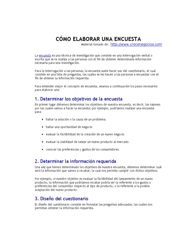 Como Elaborar Una Encuesta Ejemplo | Pdf | Cuestionario | Probabilidad