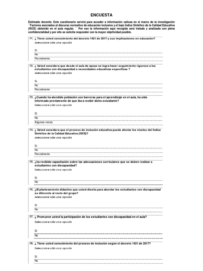 En la actualidad, el gobierno ha desarrollado una nueva ley orgánica para la mejora de la calidad educativa (2013), suponiendo la modificación de la loe. Debe ser justo, empático,.amable, cooperar, creativo, dinámico y fomentar un clima de confianza. Se realizó una adaptación del cuestionario de inclusión educativa (cie) realizado por montánchez (2014) al contexto escolar colombiano.