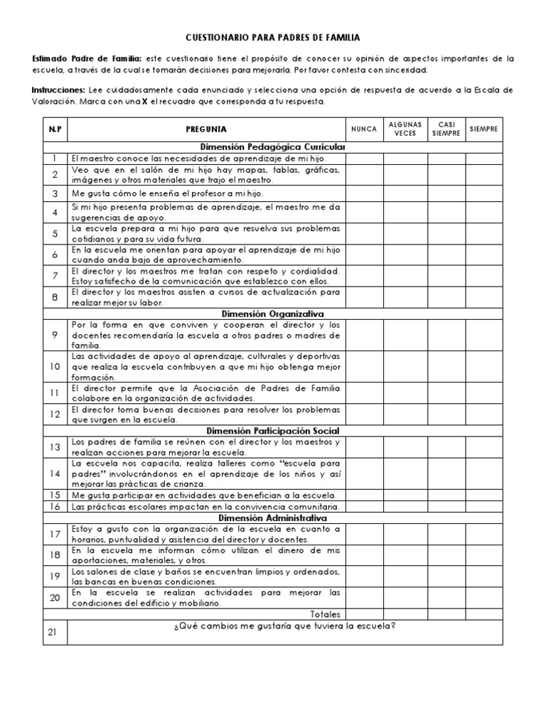 Cuestionarios Para Padres Y Alumnos | Pdf | Maestros | Cuestionario