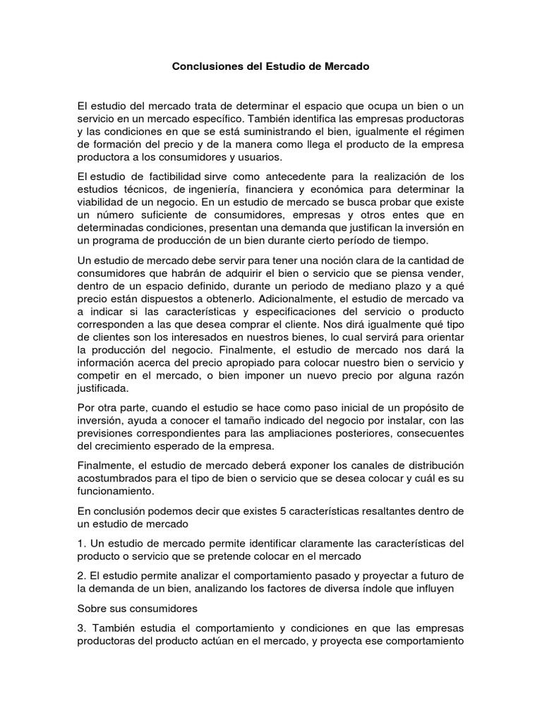 Conclusiones Del Estudio De Mercado | Pdf | Oferta Y Demanda | Mercado (Economía)
