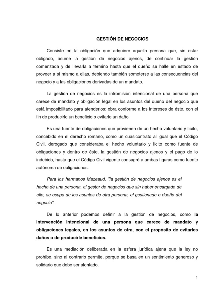 Jesús blancas josué caamal abigail victoria diana gutiérrez otra fuente de obligaciones es este hecho jurídico voluntario licito concebido tradicionalmente como cuasicontratos. Los expertos en derecho, por ejemplo, describen como gestión de negocios al cuasicontrato que surge para cuida intereses ajenos sin el mandato del dueño. ( derecho civil) acción y efecto, en una persona, el gerente, de realizar actos de administración en interés de un tercero, el administrado o dueño del negocio sin que este último se lo haya encargado.
