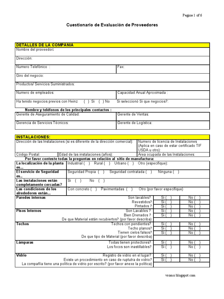 Cuestionario De Evaluación De Proveedores
